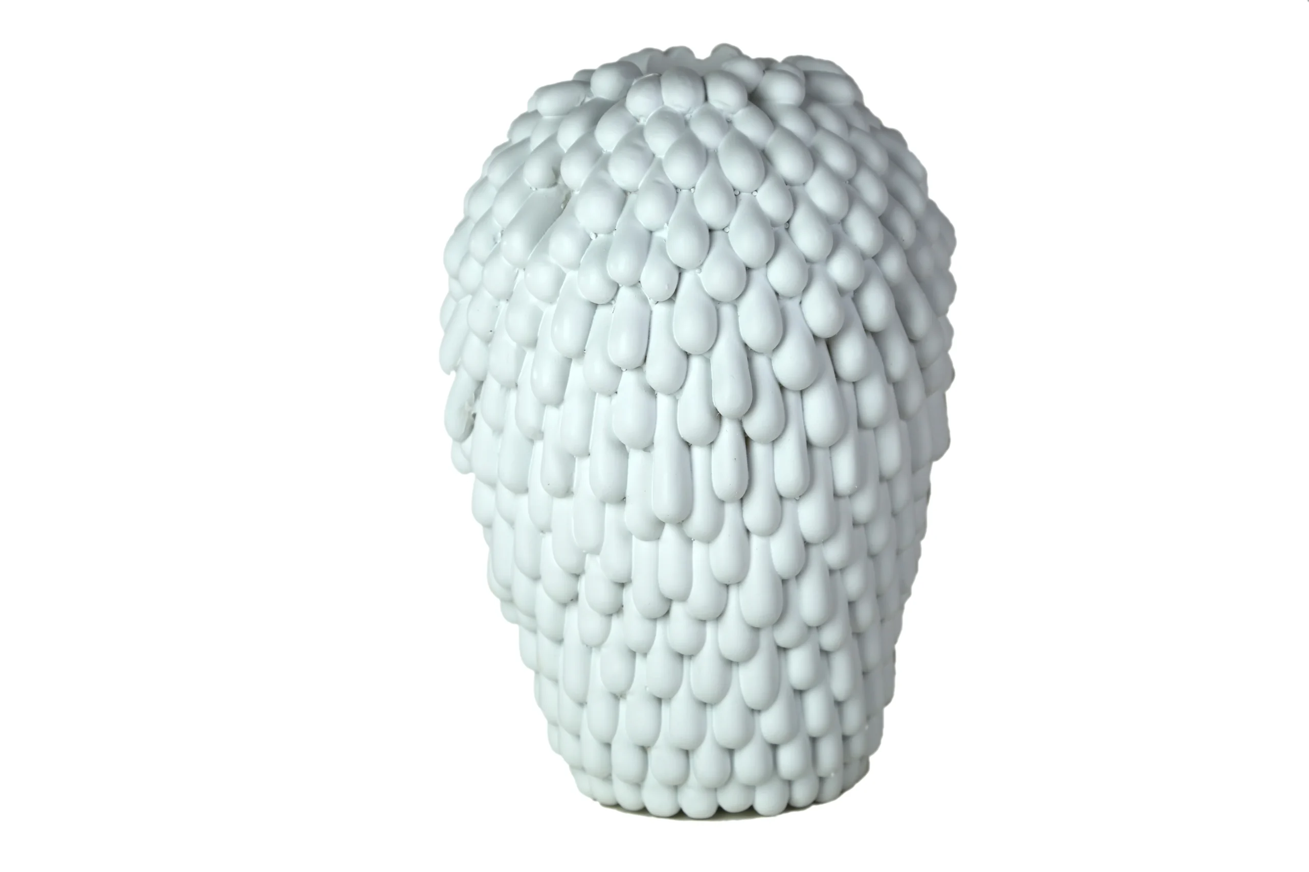 Covered entirely in hundreds of hand-crafted petal-like drops, this vase features a mesmerizing layered surface that resembles blooming flower scales or delicate ceramic feathers. The matte white finish adds a soft, refined touch that blends beautifully with minimalist, contemporary, and artistic interiors.