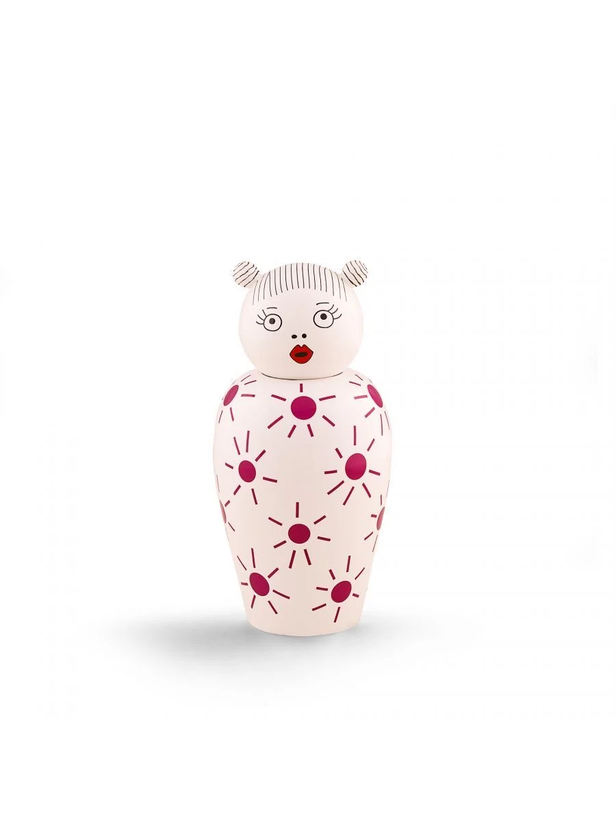 Playful, artistic, and full of charm — the Canopie – Lula porcelain vase brings a whimsical personality to any interior. Lula is instantly recognizable by her expressive wide eyes, bold red lips, and adorable double-bun hairstyle, giving her a delightful animated presence.