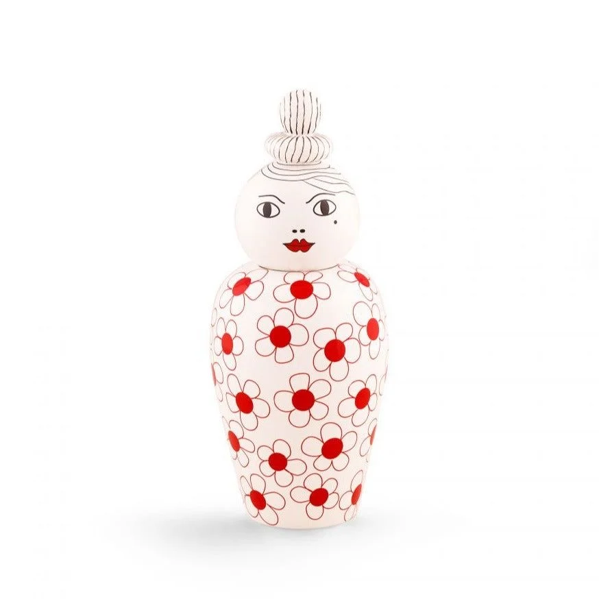 Charming, bold, and beautifully expressive — the Canopie – Pepa porcelain vase brings a delightful artistic touch to any interior. With her signature top-knot hairstyle, bright red lips, and iconic beauty mark, Pepa stands out as a character full of personality and elegance.