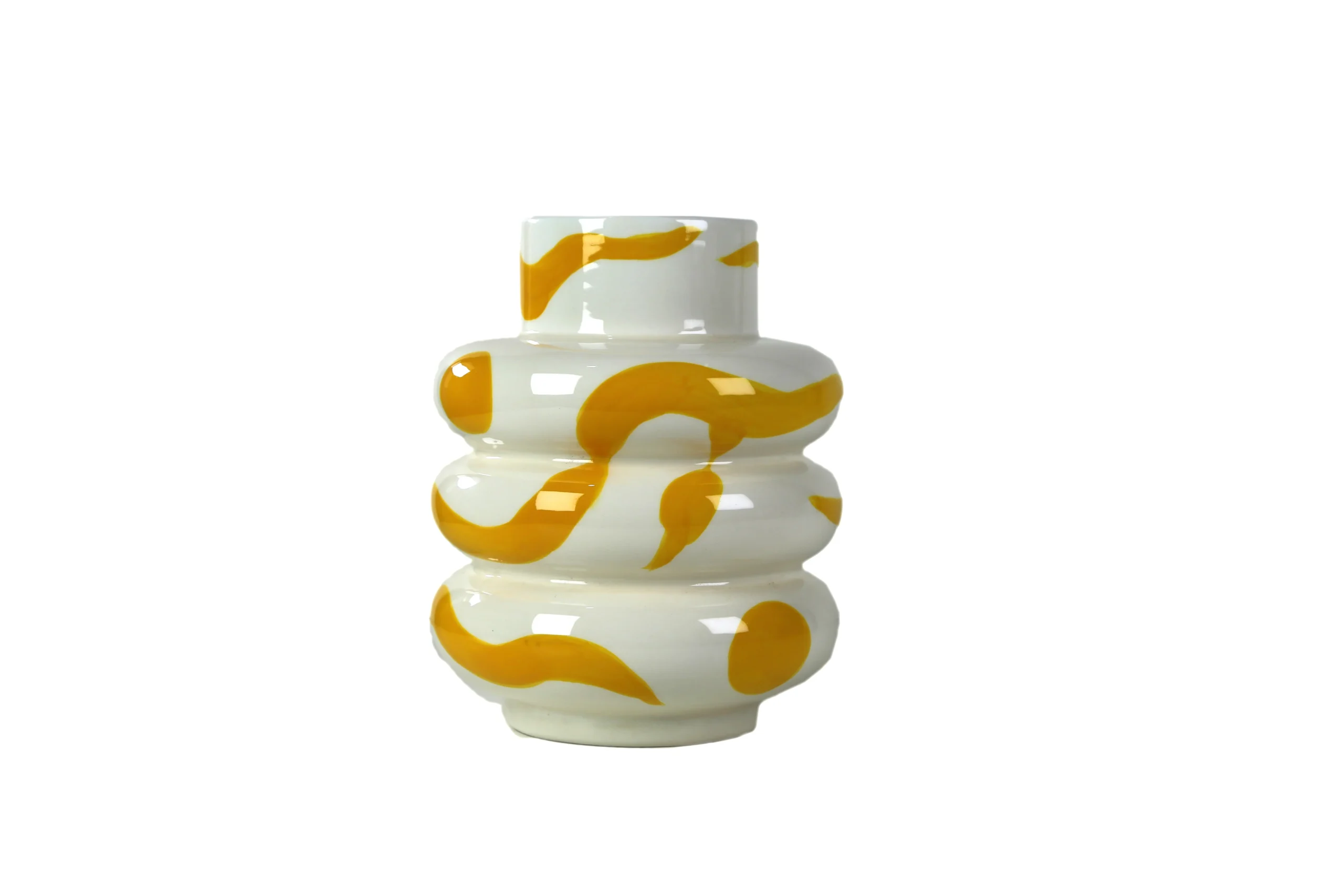 With its playful hand-painted yellow strokes wrapped around a soft white base, Mariposa brings a warm glow and lively movement to any space.