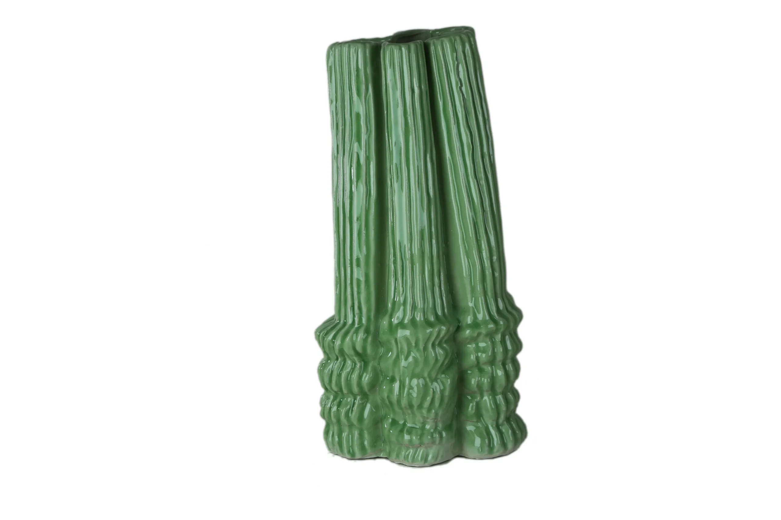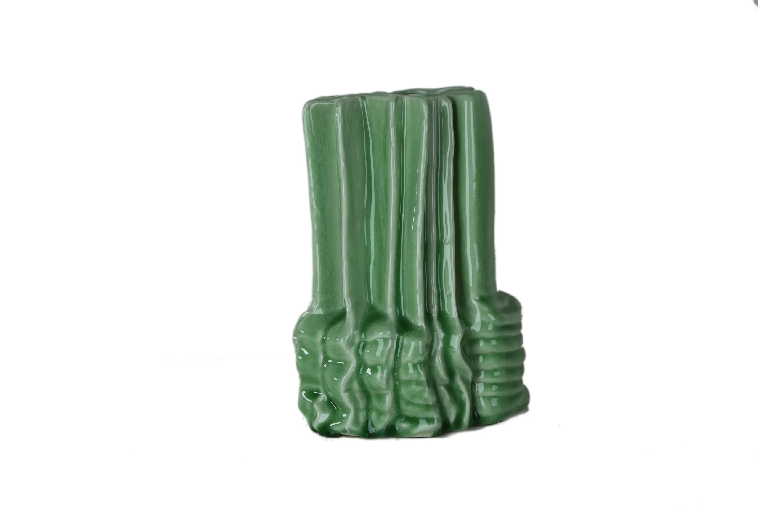 The Melted Wave Vase – Forest Green brings a bold sculptural presence to any modern space. With its fluid, molten-like ridges and organic vertical folds, this vase captures the look of soft clay frozen mid-movement. The glossy forest-green glaze enhances every curve, giving depth and richness to its architectural form.
