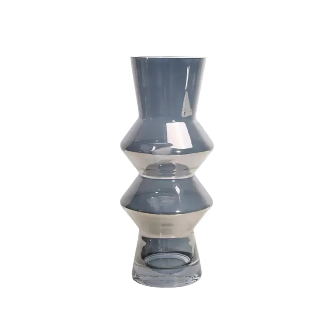 Sleek, sculptural, and effortlessly modern — the Nova Smoke Glass Vase brings a refined touch to any space. Its unique geometric silhouette, featuring stacked angular curves, creates a striking architectural presence while maintaining a soft, elegant flow.