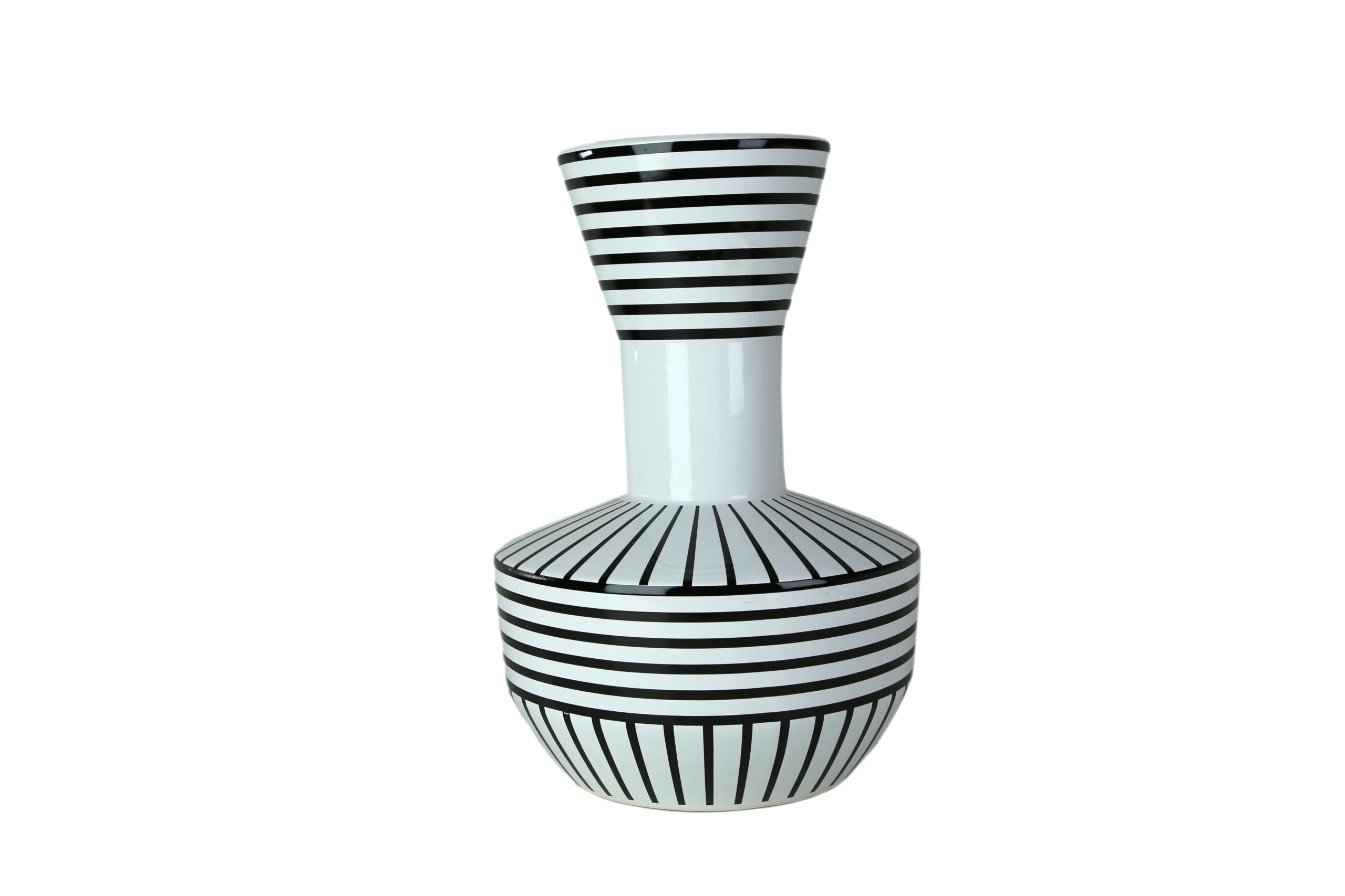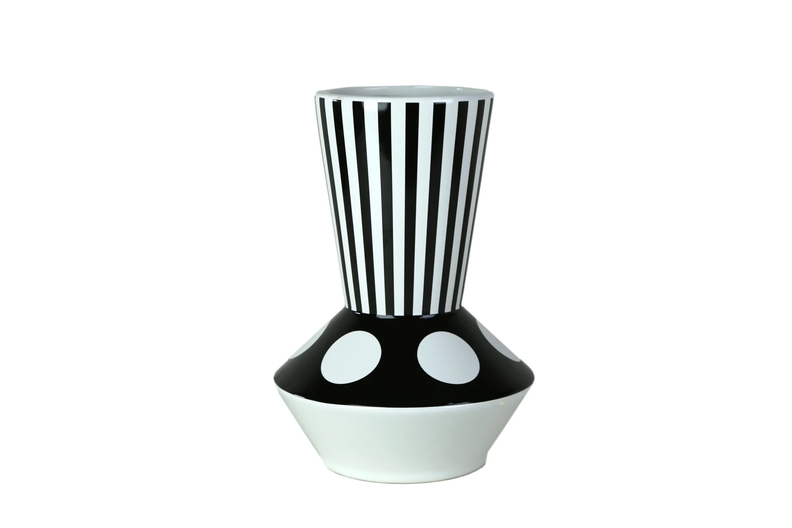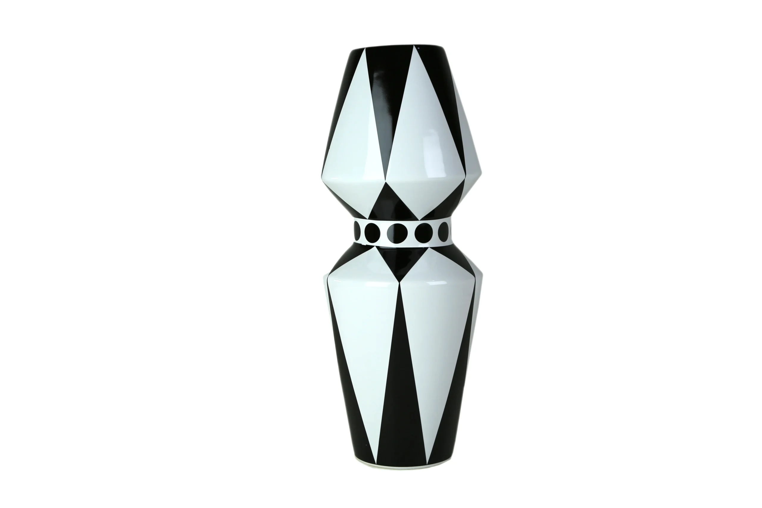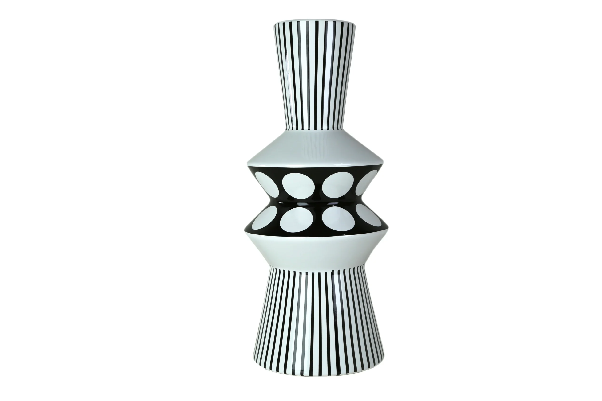 Whether adorned with fresh florals or showcased as a sculptural standalone object, this vase brings an architectural presence to consoles, sideboards, and curated shelving. Its contemporary black-and-white palette makes it effortlessly versatile, while its expressive patterns turn it into a true conversation piece.